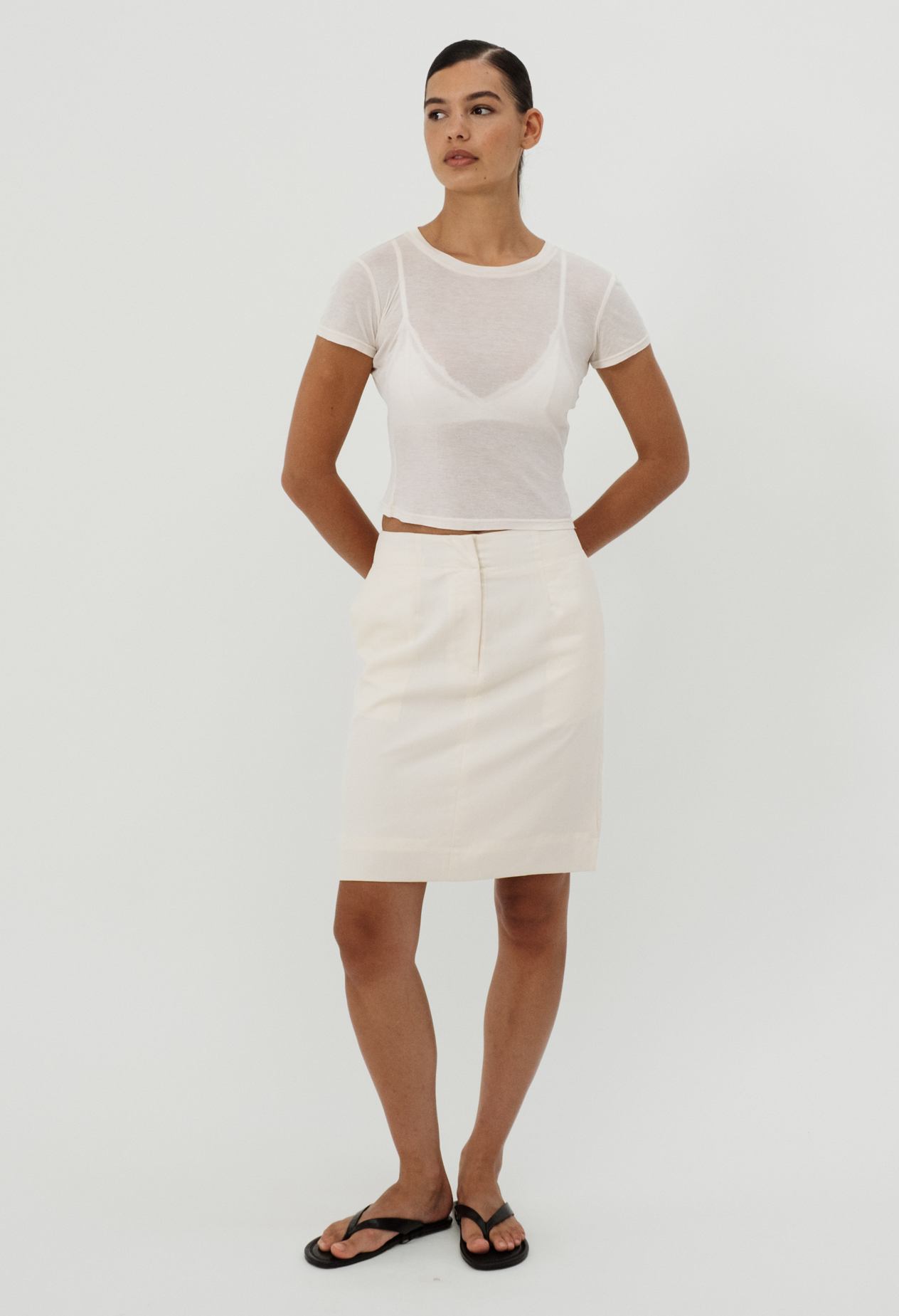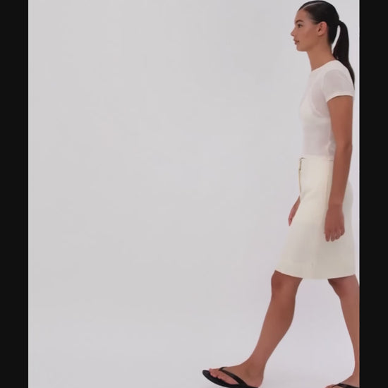 The Ines Tee is a modern take on the everyday essential lightweight, slightly sheer, and designed for fluid layering. Cut from a soft lyocell blend, it features a clean crew neckline, short sleeves, and a subtle drape. Finished with a branded woven label at the centre back neckline, it's a refined staple with thoughtful detail.